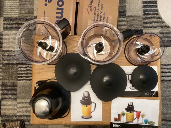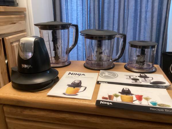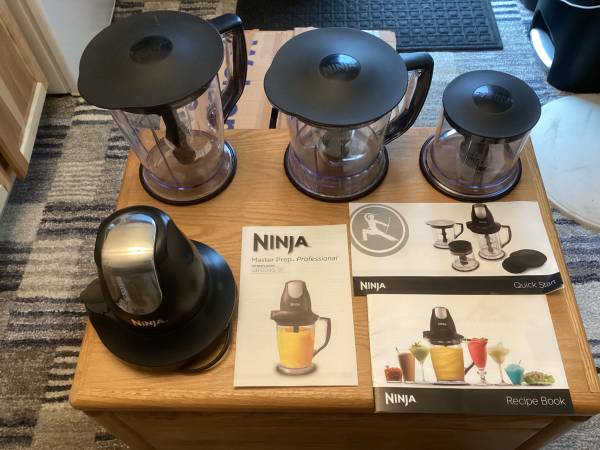 Up for sale is a Nice Ninja Prep Professional triple play blender. Like new, works great, has the large container with 3 blades, medium container with a double blade and the small container with a double/single blade. All works great. Only thing missing is the splash guard for the 16oz (small) container. One can be picked up on line.
