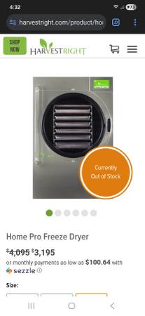 Selling my large 6 tray freeze dryer with lots of extras for $3100. Im over $4500 invested. Any questions please ask. No trades please I just need the cash. Thanks