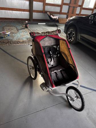 Copilot baby stroller for sale!! Can be towed behind bike, or pushed while running/jogging. Seats two.