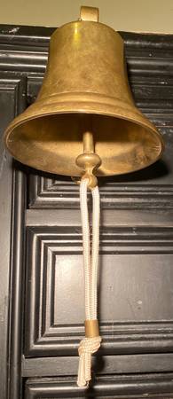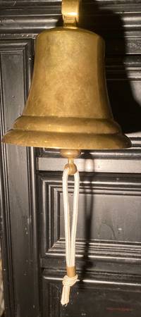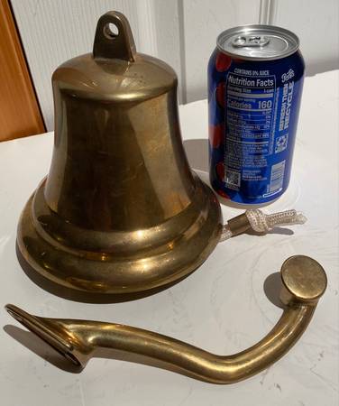 Beautiful Heavy, Solid Brass Ships Bell with wonderful tone. Yoke arm is also solid brass. Perfect for your personal watercraft, office, man-cave, she-shed, or porch to call the kids in for dinner.
