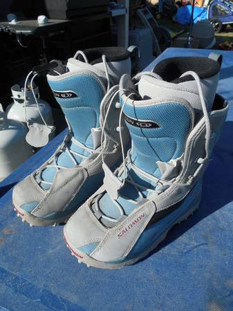 Hawthorn size 7D work boots in pretty good condition- 155.00 Salomon Vigil women's snowboard boots, size 6.5- 15.00 New Reebok men's size 12 Walkway DMX foam shoes- 15.00 Older ice skates. Size 10.5...