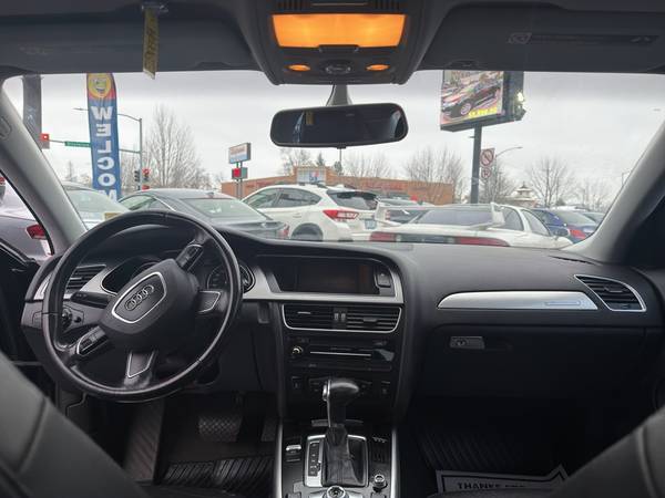 2014 Audi A4 Premium AWD ??? 2.0L 4-Cylinder Gasoline, Spokane WA Discover a refined driving experience with this 2014 Audi A4 Premium, now available in Spokane, WA. Powered by a responsive 2.0L 4-cylinder gasoline engine and equipped with Audi's reliable all-wheel-drive system, this Audi A4 delivers confident handling and efficient performance in all seasons. The Premium trim combines luxury and functionality, making it an ideal choice for daily commuting or weekend getaways. Key features include factory navigation to keep you on course, XM Radio for endless entertainment, and heated seats for comfortable winter driving. HID headlamps provide superior nighttime visibility, while premium wheels enhance both style and road grip. The cabin balances upscale materials with driver-focused ergonomics, offering a comfortable and connected ride. This Audi A4 has been carefully maintained and inspected to ensure dependable performance. With its blend of efficiency, safety, and upscale features, it represents exceptional value for drivers seeking European engineering at a competitive price. Located in Spokane, WA, this vehicle is being offered at the best price in the area ??? an outstanding opportunity to own a premium compact sedan without compromise. Contact us to schedule a test drive in Spokane and see why this 2014 Audi A4 Premium AWD is the smart choice for drivers who want performance, luxury, and value.