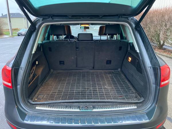 2013 Touareg with 150k miles. Leather interior, V6, AWD, runs great. New tires last year. Burns some oil—I just add a quart every month or two depending on use. Some slight wear on driver upholstery (crease in leather that could become a full crack eventually). Great off road, snow, and family car at a good value. Firm on price.
