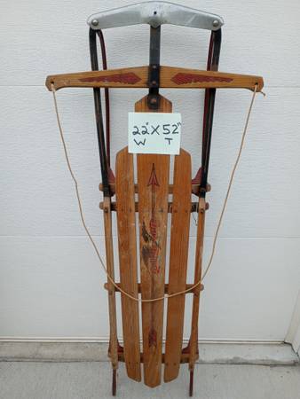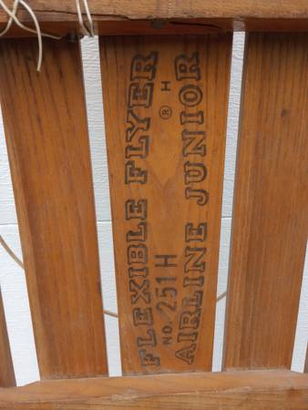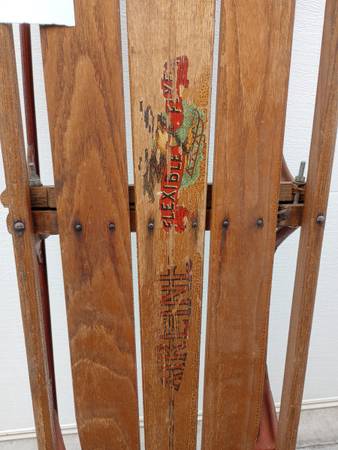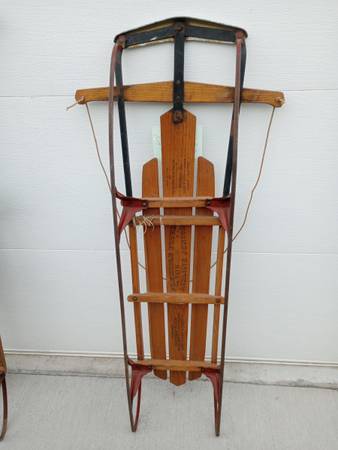 2 VINTAGE FLEXABLE FLYER SNOW SLEDS 52" T X 22" W= $55.00...AND.....60" T X 24" W= $65.00 SEE PHOTOS. NICE ENOUGH FOR INDOOR DISPLAY OR OUTDOORS. GOOD CONDITION AS SHOWN. LOCATED IN OTIS ORCHARDS...