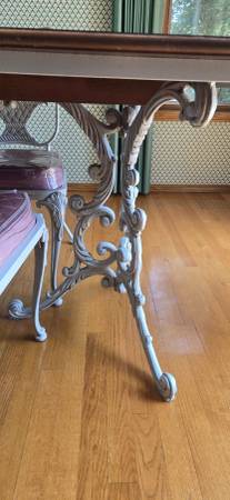 Wrought iron dining table: 57 inches long by 35.5 inches wide by 29 inches high
