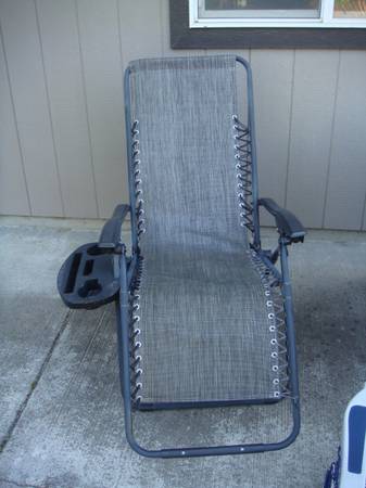 Zero Gravity Lawn Chair. Reclining lawn chair. Has cup holder. Second one is same price. fifty dollars for both.