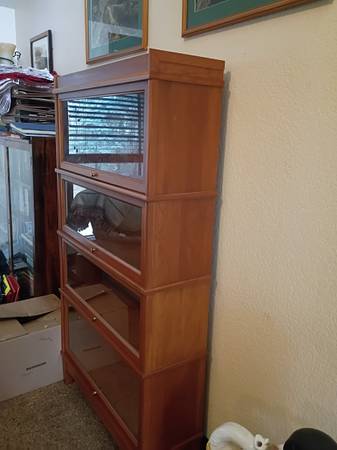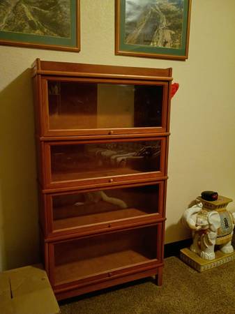 Beautiful birch wood with light cherry stain barrister bookcase, 4 tiers tall. https://www.halebookcasesdirect.com/#:~:text=Solid%20Since%201907,the%20contemporary%20home%20or%20office. Here's the...
