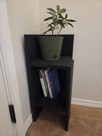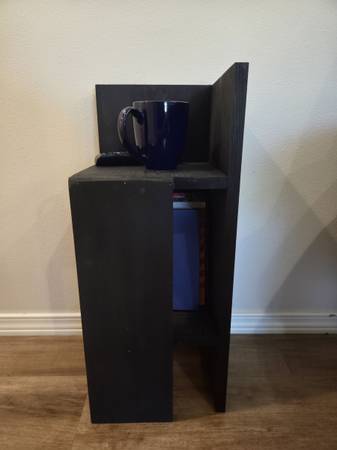 Handmade black side table perfect for storing a few books and holding your tea or coffee. Made out of solid Pine wood and painted matte black. 24in tall x 10in wide x 10in long