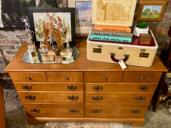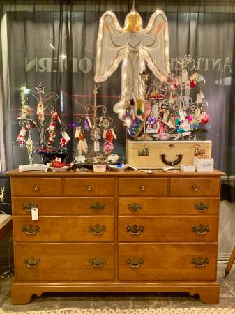 This beautiful dresser was built to last and is in wonderful condition. It features solid maple and birch construction and has six dovetail joint drawers (the top left has a divider, the two middle are extra deep and the bottom two are cedar lined). If you have ANY questions please call the number in the ad, I am not able to respond to messages. Thank you.
