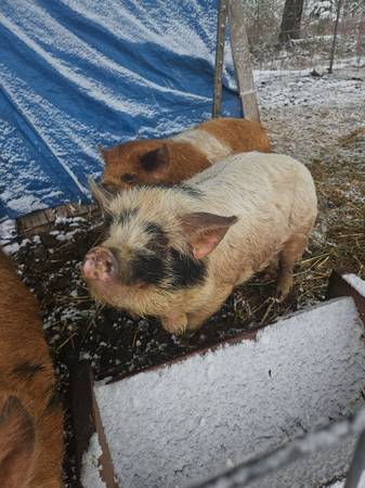 Kune kune pigs. Have 1 12 week old piglet 18 month old female( red spotted) (she should be breed) if she isn't breed will be breed back at no charge. 1 year old boar (white and black) all pure breed...