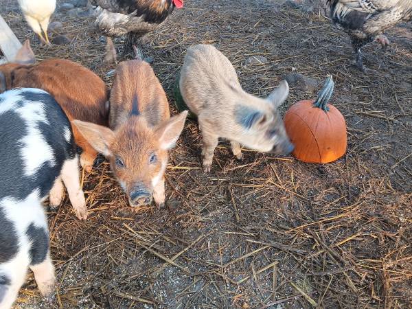 Hello I have 3 baby piggies ready for new barns! Momma is magnalista and Berkshire daddy is magnalista and mulefoot mix! Babys were born oct 21st they are there is 2 gilts and a barrow available 1 gilt has a little knot in her front leg from a Injury when she was much smaller pretty sure her momma had stepped on her or something she no longer limps and uses her leg just fine but ot does have a knot where it healed. Both parents are super sweet pigs and the momma free farrows with another sow and raies babys together no heat no assistance. Fed none gmo no corn or soy feed i am located between ford and tumtum feel free to message for more details i am asking 125 eacb i am also I am open to all sorts of barters for hay, animal feed, farm fresh beef, canned/homemade goods, animals supplies, animals processing supplies, meat grinder,meat slicer/ect..wild game...I am located between ford and tumtum wa feel free to message for more information thank you!