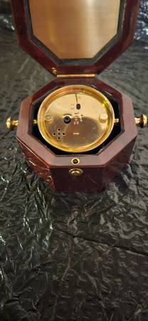 Howard Miller desktop chronometer model #645-187, cherry finished, octagon shaped cabinet, clock is brass with a quartz movement 140.00 Cash please comes from a smoke free pet free kid free home,...