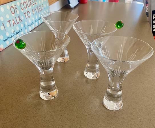 Very unique martini glasses, set of 4. 2 glass olive tooth picks