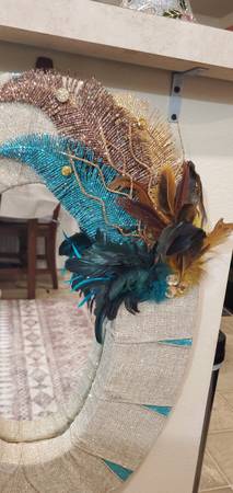 I made all of these wreaths, I know some of them are kind of odd. i just went with whatever I was feeling in the moment. I think the ones with the feathers would be so great for who done it murder style themed party . It just reminds me of the Renaissance and you know the flapper kind of era. Some of them don't do come with the wreath hang but all of them have a way to hang it with or without a wreath holder. All of these you know are very unique Style i put my love into them and I hope that there is something that everybody will love even kind of the oddball ones. The brown one i think it would be so good for Thanksgiving it's just a great fall it's just a great fall wreath . Now the silver one you can hang it two ways I have hooks for both ways depending on your space or what you like better. Please don't ask if this is available I will let people know what number has been sold and if that number is not on the top of my post then I still have it. All of these are from a smoke-free home and I live off the Pines exit near the 7-eleven.