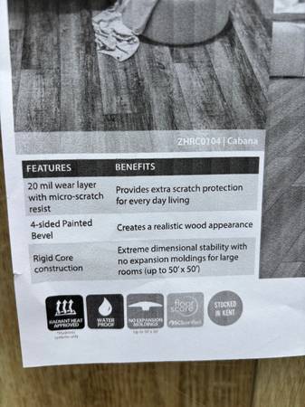 20 mil wear layer lvp flooring . $1.59 per square foot . Regular retail cost is $5.99 per square foot. Have 12,000 square feet. We have lowest cost on flooring in town . We are selling out fast at low cost to make room for new inventory coming in 2-3 weeks all has to go fast to make room . Address:3728 East Wellesley Ave . Hours 3 pm -6 Monday - Friday. Saturday 12-5