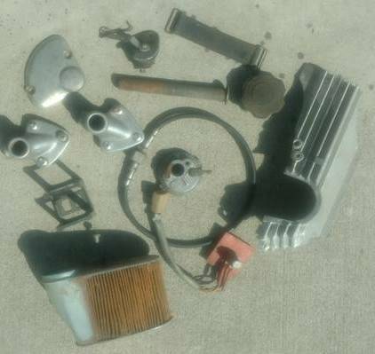 One chain case, one injector oil tank and several small odds and ends from 1965-'66 Yamaha YA6 125 "Santa Barbara". I've had a few of these bikes over the years and this is what I have left over. 1st $125 cash takes everything. Ph 208-69I_8767. No emails or texts please. Thanks