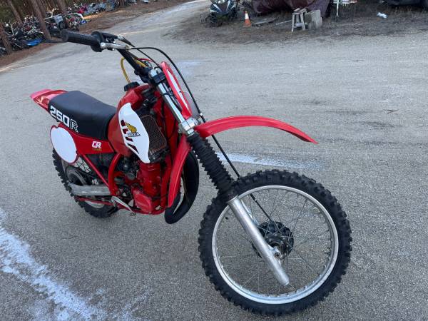 81 honda cr-250r elsinore, runs strong, new seat cover, aircleaner, intake manifold, brake cable, chain slider, levers, good suspension and tires. hard to find this model, can send video of it running