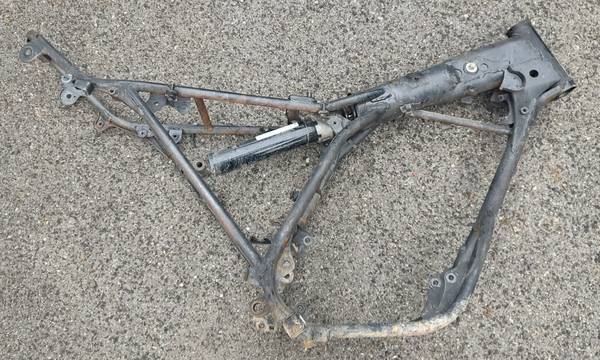 Straight, unmodified frame with monoshock from 1977 Yamaha Enduro 175: No paperwork. First $25 cash takes. Contact through this ad and leave a phone number if interested.