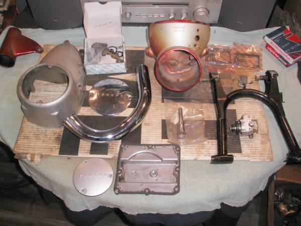 60 Years of Restorations.Bought out 2 60s70s80s Motorcycle Shops. Yrs of Parts for restorations.I Have Lots of Whole Complete bikes also.Mostly GT MX,LT,DT,CT, MX YZ.RD,RMs,PE,GT,F9,F7,KX,KDX,.CR MR,SL,Hodaka,For Restorations I AM Going to MarketP,Ebay soon.No Action here.Sheds are Packed Full of Parts.Seats, pipes,Tanks,Wheels,Engines.Etc.I have alot of the hard to get parts., down to rubber Grommets.Lights,Gauges.Factory Nuts and BOLTS.Call for what you need to restore.ALL Parts are 1964-1984.I also have Yamaha Factory Manuals 1964-2002. Possible trade on parts.