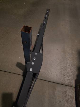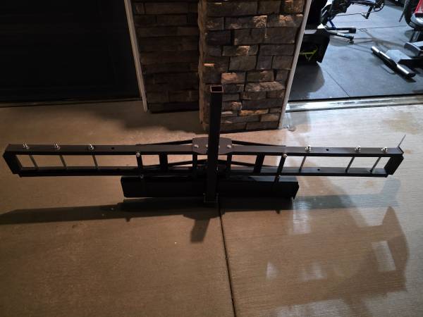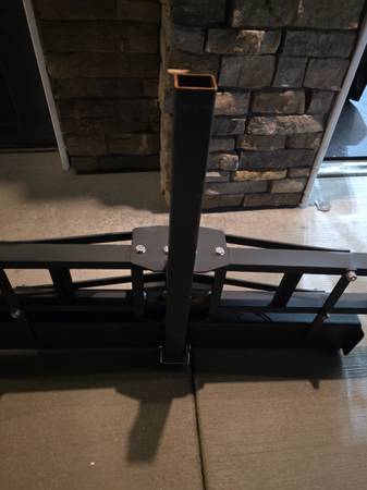 Used but in decent condition. Fits 2" hitch and supports an average dirt bike or similar. Has a bent tie down bracket.
