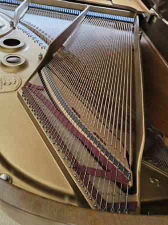 #389495 L manufactured 1965 One owner, good condition. Walnut case has some fading, typical for it's age. Bench included. Buyer to pay cost of moving.