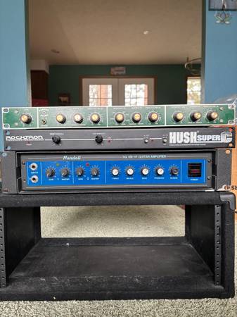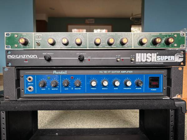 80’s Made in USA Randall RG100HT rack mounted 100 watt solid state amp. There are no solid state repair places around where I live, so I can not fix the issue that it currently has. Channel 1 “green channel” functions perfectly and is fully operational. Channel 2 “red channel” comes on, but the volume will not increase beyond a very quiet sound regardless of gain and volume knobs, when plugged straight into a cab from the amp output. BUT- when the line out is used and plugged into a slave amp- Channel 2 becomes fully functional and achieves all desired high-gain tones this amp is known for. There must be some kind of issue with the internal connections between the preamp and power section, but without an amp repairman willing to work on it here in town- I want to sell to someone who either is willing to use a slave rig or can have it fixed. This amp is in decent condition for a nearly 40 year old piece of gear