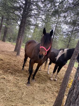 I have 2 horses tequila and thunder. Tequila is a reddish black brown mare and changes colors with the season. She’s broke but still very green. I rescued them 3 years ago and have been rehabilitating them since. Thunder is 30 years old and has some issues gaining weight but he is not skinny by any means. Tequila is 27 and still has the get up and go if you wanted to make her a barrel horse (I have worked her on barrels a couple times) or a trail pony she just needs an experienced rider. You have to haul I don’t have a trailer and I’m rehoming them cause I have a full time job to buy a house and I don’t have the time for them anymore and it’s not fair to them. I do want to make sure they go to a good home and don’t go back from where they came from. My rehoming fee is $500 just to make sure they go to a good loving home. They can’t be separated have to go together as they are each others companions