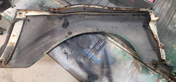 Rust in the normal lower attachment area. Passenger fender has some dents but the driver side is in good shape. Willing to sell them separately