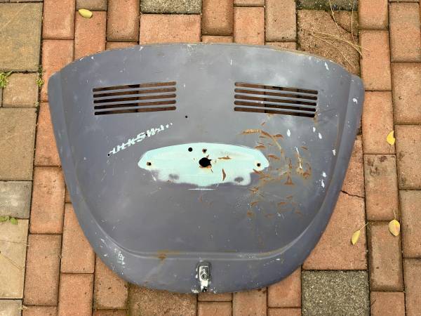 Original Volkswagen Beetle rear engine lid in decent usable condition. This has a small bump on the passenger side that has been pounded out otherwise hinges are in good working order and the overall shape is pretty good. Great for parting a car back together,restoration,upgrade,yard art or repurposing into something more creative. To the best of my knowledge this is correct for 1970/71 but should fit on most bugs 1968 and later