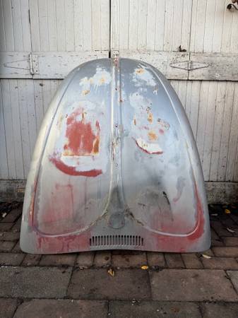 Original vintage Volkswagen Beetle front hood in very decent usable condition. Shows a little age otherwise the overall shape is pretty good and the hinge areas are in good usable shape. To the best of my knowledge this should fit most standard NON SUPER beetles 1968-1977. Great for parting a car back together,upgrade or repurposing