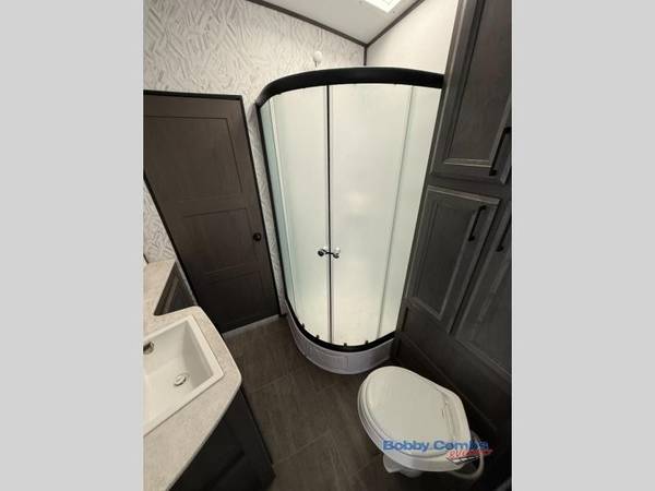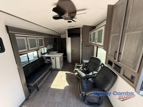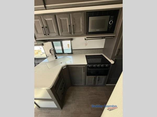 Load up your family, a few off-road toys, and enjoy the weekend of your dreams with this Stryker toy hauler travel trailer by Cruiser RV. This model features plenty of space thanks to the single slide, and the two entry doors give this unit great accessibility. The king sliding bed in the private master suite will be a retreat away from the hustle and bustle in the central living area. There are two opposing sofas and an electric queen-size bunk in the garage area that can be transformed into additional sleeping space for extra family or friends that have joined you.