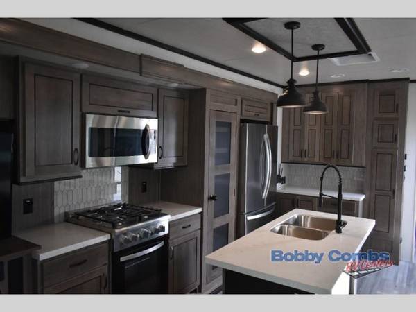 You will be amazed at how much fun this Cedar Creek Cottage destination trailer will provide! With its entertainment center, fireplace, hide-a-bed sofa, and power theater seats, you'll have a comfortable rear living area just waiting for you to invite friends over. The kitchen is also guest-ready with its kitchen island, four-burner range, full pantry, 20-cubic foot refrigerator, and over-the-range microwave with built-in vent, and you'll also have a free-standing table with chairs that you can use when you all want to sit down and enjoy a delicious meal together. The table even has a hidden table leaf extension that you can insert if you have extra people joining you. At the end of a fun-filled day, head up to the front private bedroom and spend some time relaxing and rejuvenating your tired body on the king-size bed.Â