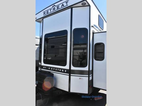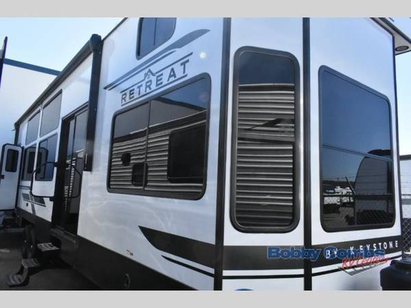 The Keystone Retreat destination trailer is a luxurious retreat in and of itself! You won't need to plan an extensive road trip because the Retreat gives you everything you need in one location. The spacious interiors include residential appliances and plenty of storage spaces for personal belongings, camp gear, food, and more! Whether you choose a Retreat with laminated or aluminum sidewalls, you're sure to enjoy extended stays to the fullest!