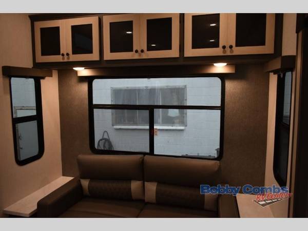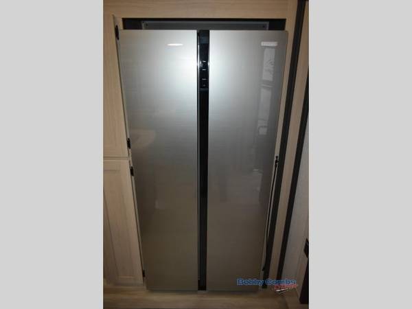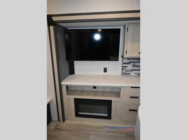 Wow! You won't believe the features found in this luxury fifth wheel that can sleep up to nine each night! Your guests or the kids will absolutely love the middle bunkroom with a hide-a-bed sofa and bunk beds plus a loft above for even more sleeping or storage space. There is also a desk/wardrobe here, which will allow you to utilize this space as an office as well! You'll have your own space in the front private bedroom on the king bed slide out, and there is a walk-in wardrobe to keep your clothes tidy. There is even washer and dryer prep for the option to keep those clothes clean! The chef of your group will have everything they need to prepare meals, including a 21" 2-in-1 oven range, an over-the-range microwave, a 16 cu. ft. 12V refrigerator, plus a kitchen island for more counter space. In the evenings, your crew can get cozy on the rear sofa and theater seats across from the entertainment center and fireplace, or you might just play a game at the hi-top table and chairs!