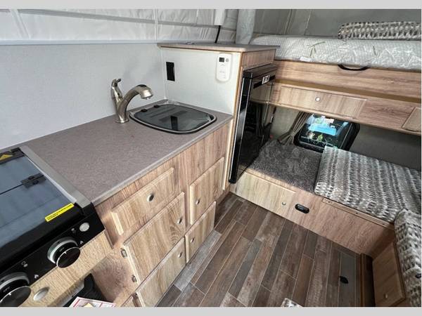 If you have a standard short bed (6' 4" to 6' 10") or long bed (8') truck then you need this truck camper! With the cassette toilet in the wet bath, you won't have to unload your camper to dump your waste tank. Feel well rested after sleeping on the front queen bed with hamper storage on either side of it and fry some eggs up on the two burner slide-in glass top stove. There is a 12V compressor refrigerator to store any leftovers and a wardrobe to store your clothes. A few other features you will appreciate include an exterior shower, an auto ignition water heater, and a lower profile for less wind resistance!