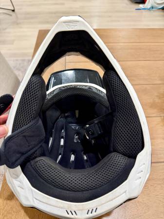 Fly racing dirt bike helmet, youth L. See photos, still in great condition. The inside pads are like new, outside of helmet has little nicks and scratches. This was my son’s spare helmet.