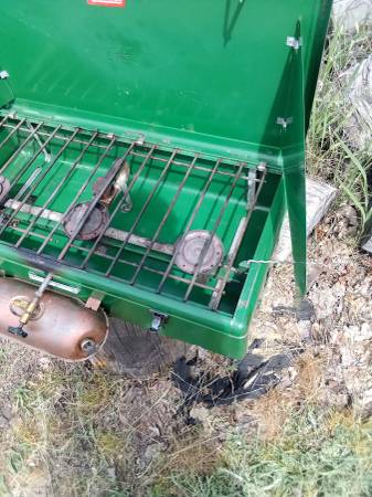 This is a nice working 3 burner Coleman 426 B stove, made in the late 50s. it does hold pressure. there are no dents some missing paint. some minor rust,as seen in pictures. $45.00. call or text to Dave is best @ show contact info