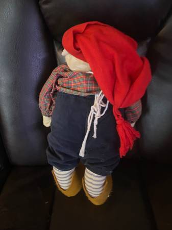 Vintage Christmas elf stuffed animal baker with baking apron on, 22 inches tall, 5.00, 509-951-157one
