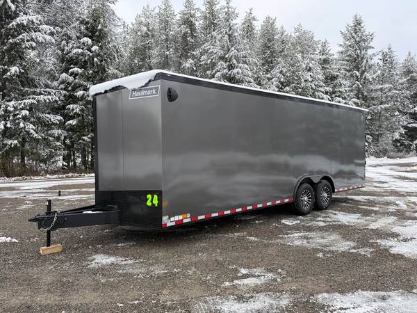 This brand-new 2026 Haulmark Transport 8.5x24 just landed at Northwest Rides. Loaded with premium upgrades, extra height, recessed E-track, extended tongue, and the Phantom trim package — perfect for UTV/SXS hauling, work, moving, or motorsports.