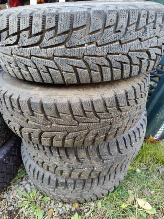 4 studded Hankook winter ipike winter tires, good condition p 175 70r13 studded winter tires mounted on 4 lug wheels. Bolt pattern 4 on 98mm.