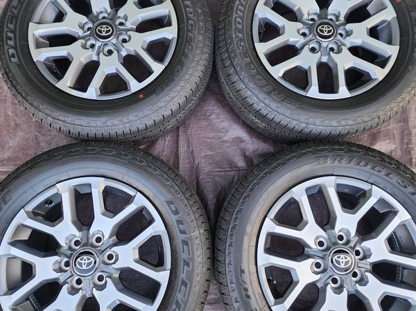 4 New Factory Toyota Tundra and Sequoia Tires 265/60R20 and Alloy Wheels Lug 6x139.7 Pattern for Years 2026 back thru to 2022 Only, with Tire Light Sensors TPMS, Brand New 2026, Driven 3 Miles, $1400
