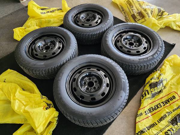 90% Plus Tread Life Remaining Himalaya Studded 205/65R15 Winter Snow Tires and Snow Rims Lug Pattern 5x100 for Import and Domestic Vehicles ready to bolt on for safe winter driving