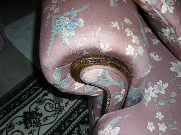 Slight wear showing on right armrest and cushion (See photo)
